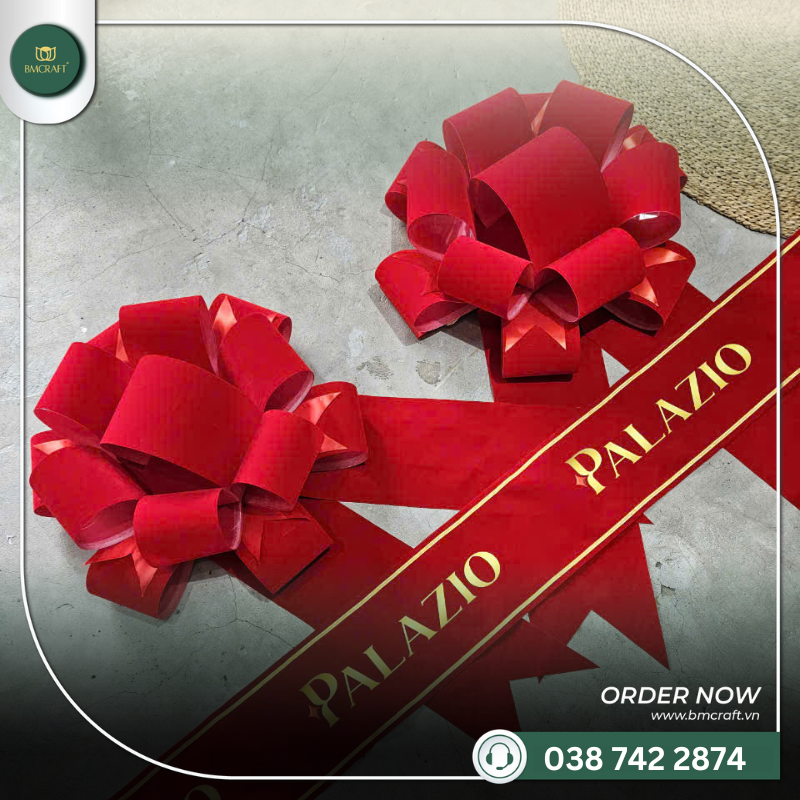 BMCRAFT – Tinh tế trong từng chi tiết thủ công. Liên hệ ngay để được tư vấn thiết kế bộ nơ băng khánh thành mang dấu ấn thương hiệu riêng của bạn.