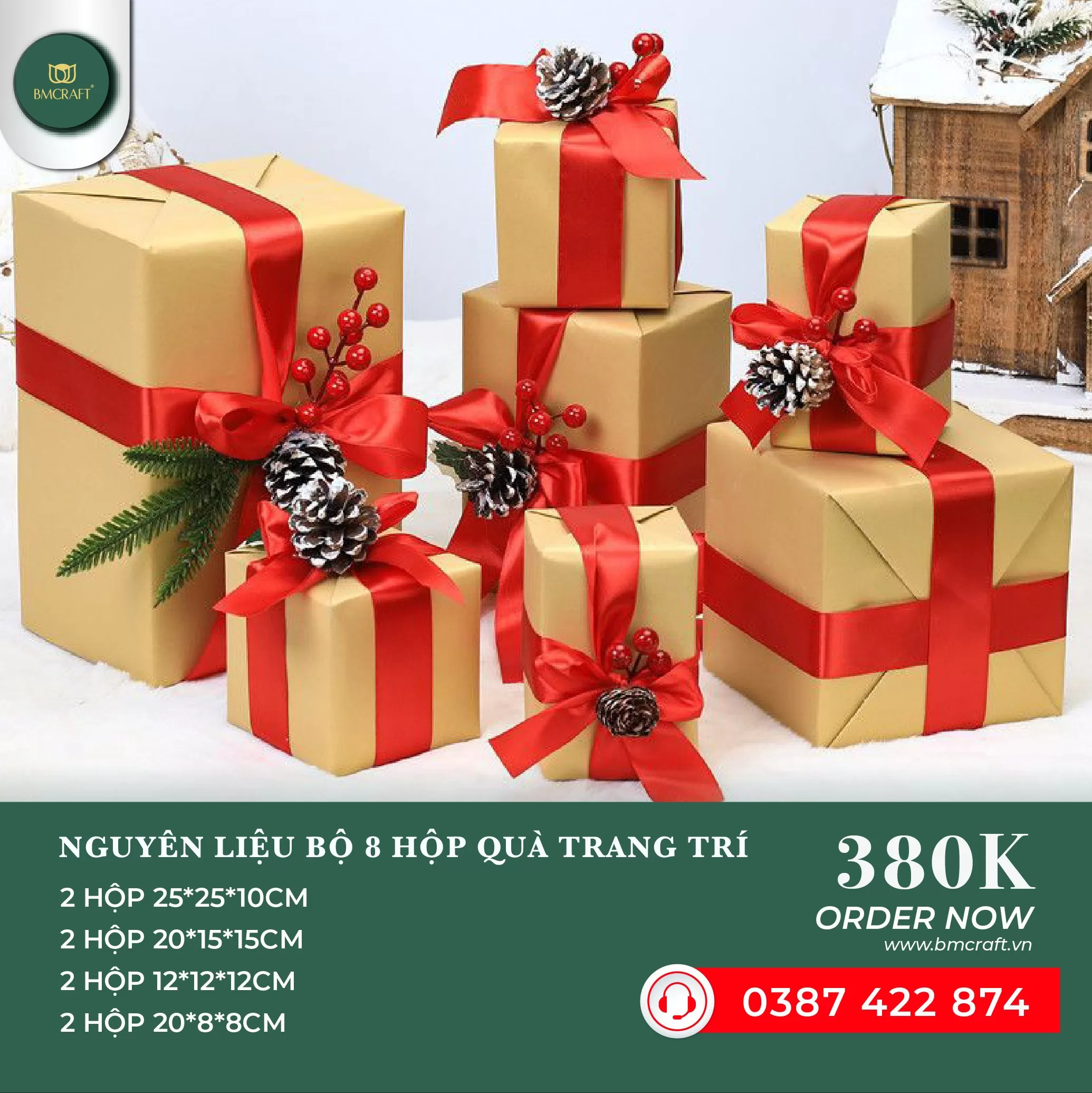 bộ hộp quà trang trí giáng sinh BMCRAFT