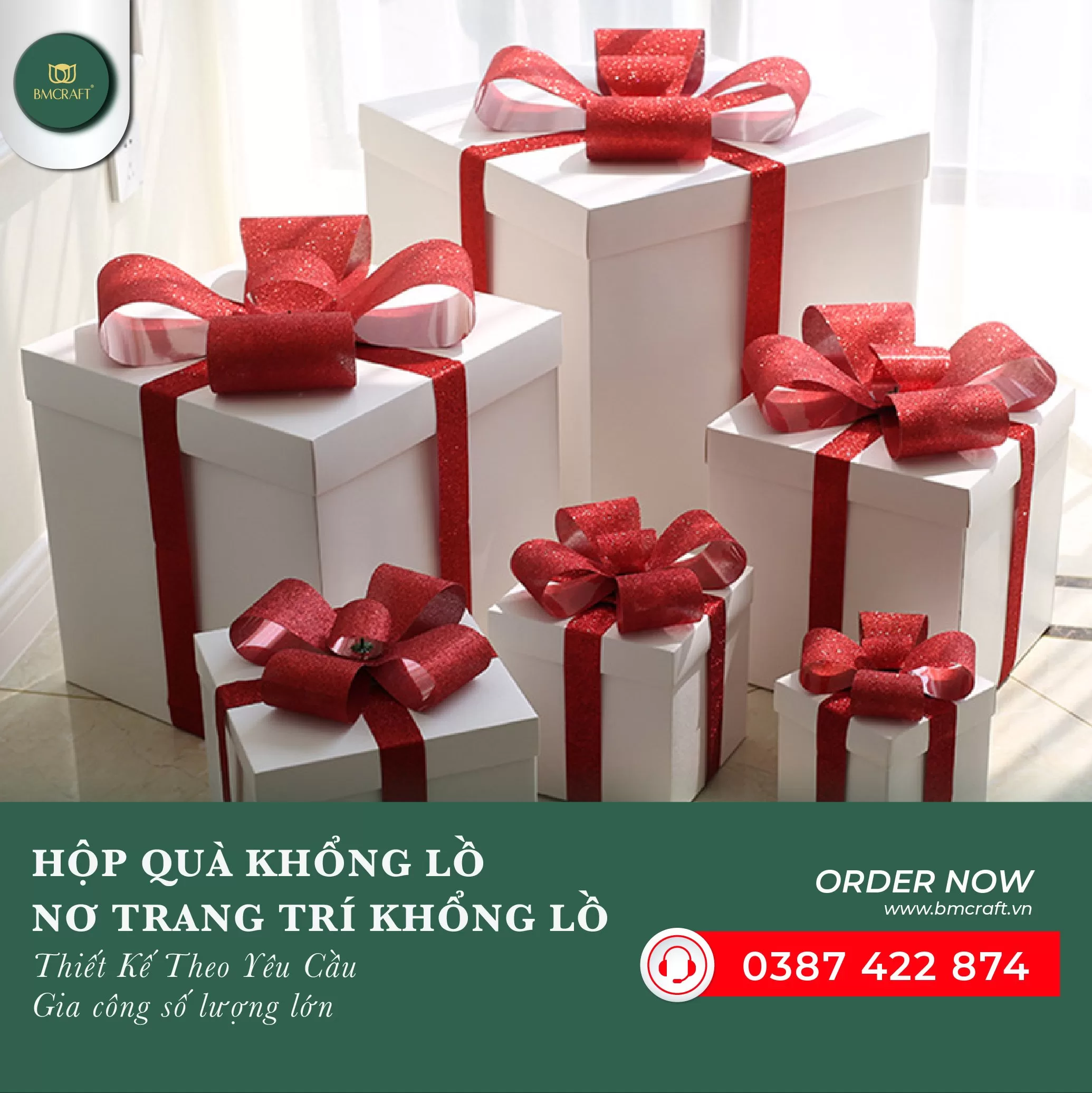 Bộ hộp quà trang trí giáng sinh khổng lồ, size lớn được BMCRAFT thiết kế, sản xuất dựa trên yêu cầu về số lượng, kích thước, màu sắc cùng hình dáng. Sản phẩm được hoàn thiện theo yêu cầu từ Quý Khách Hàng.