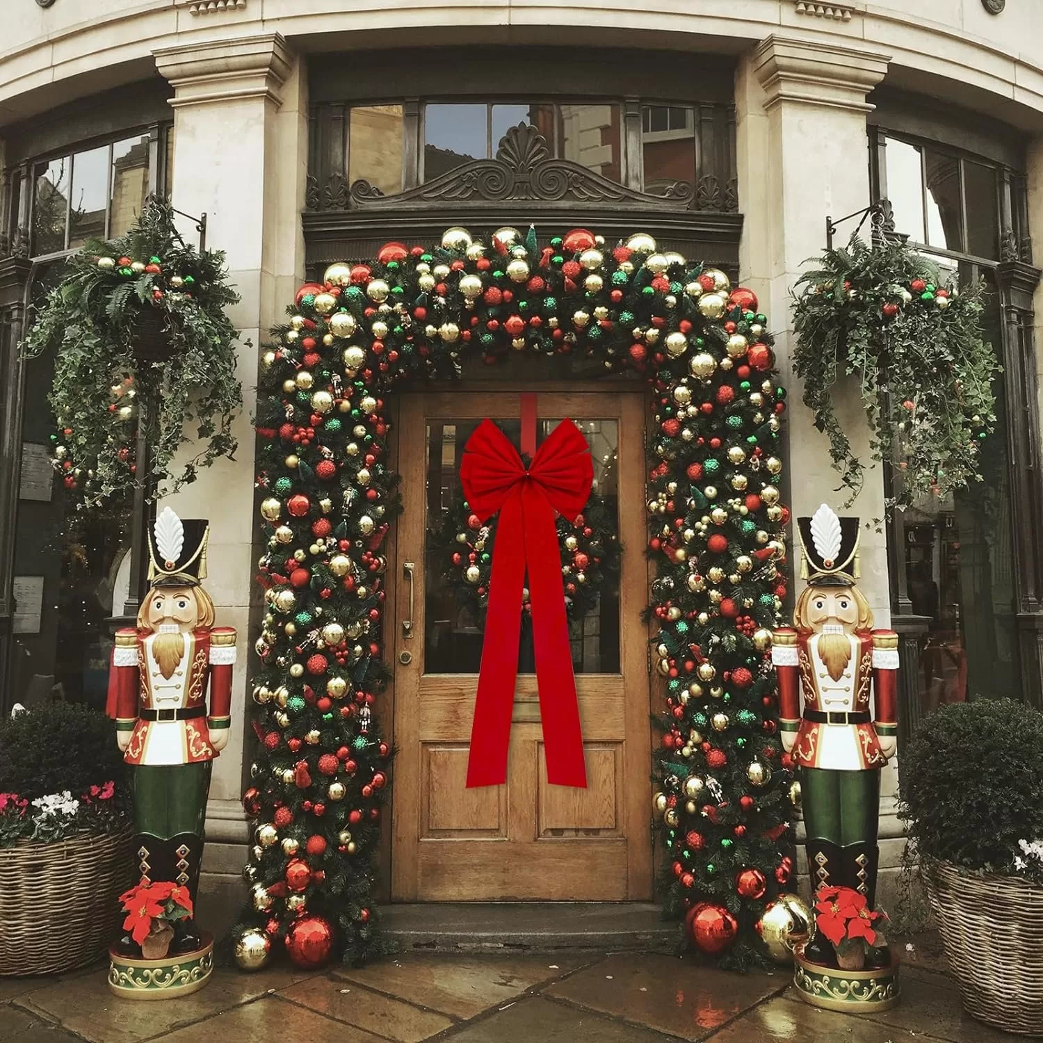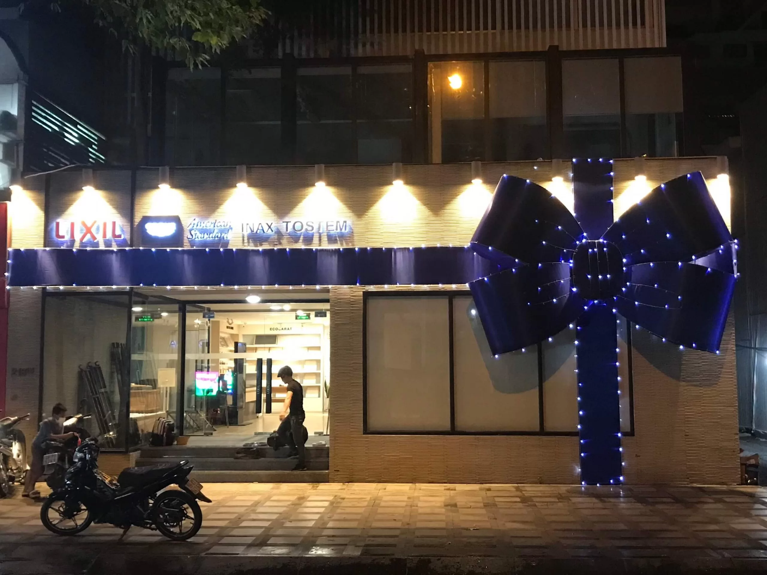 Nơ khổng lồ trang trí tòa nhà, mặt tiền cửa hàng mùa lễ hội Noel
