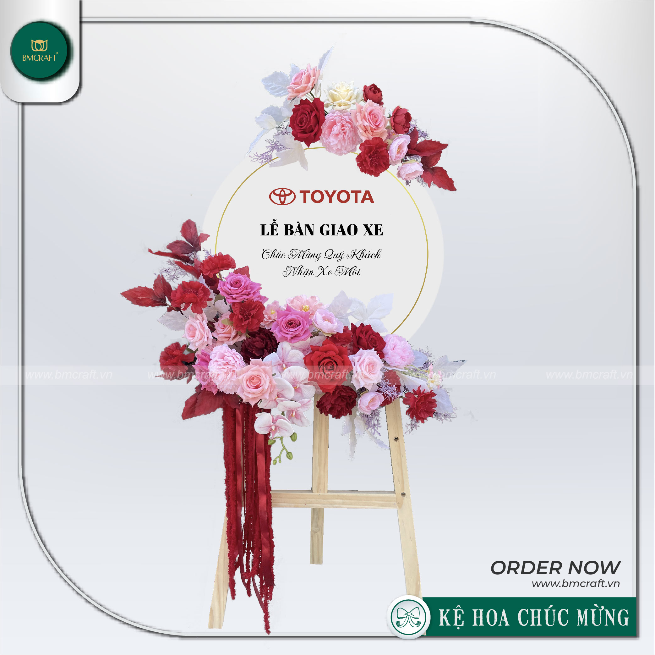Đã đến lúc để khoảnh khắc giao xe trở nên đặc biệt, đáng nhớ và đẳng cấp hơn bao giờ hết. Hãy để BMCRAFT giúp bạn kể câu chuyện thương hiệu qua những thiết kế kệ hoa giao xe thủ công, tinh xảo và hoàn toàn theo yêu cầu.