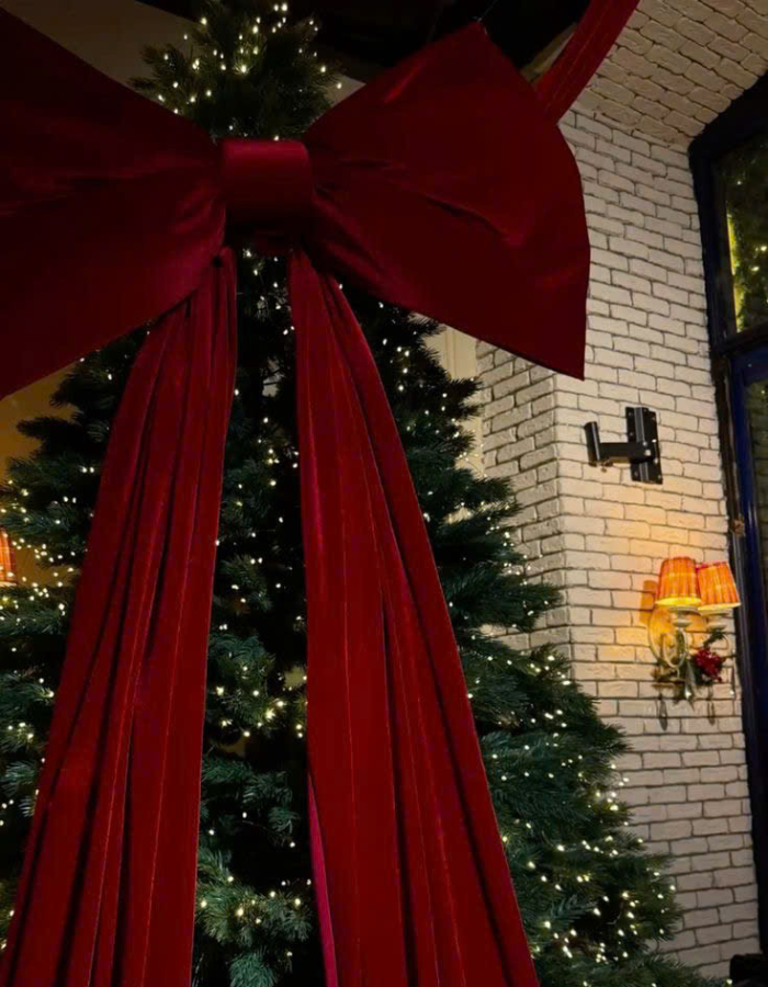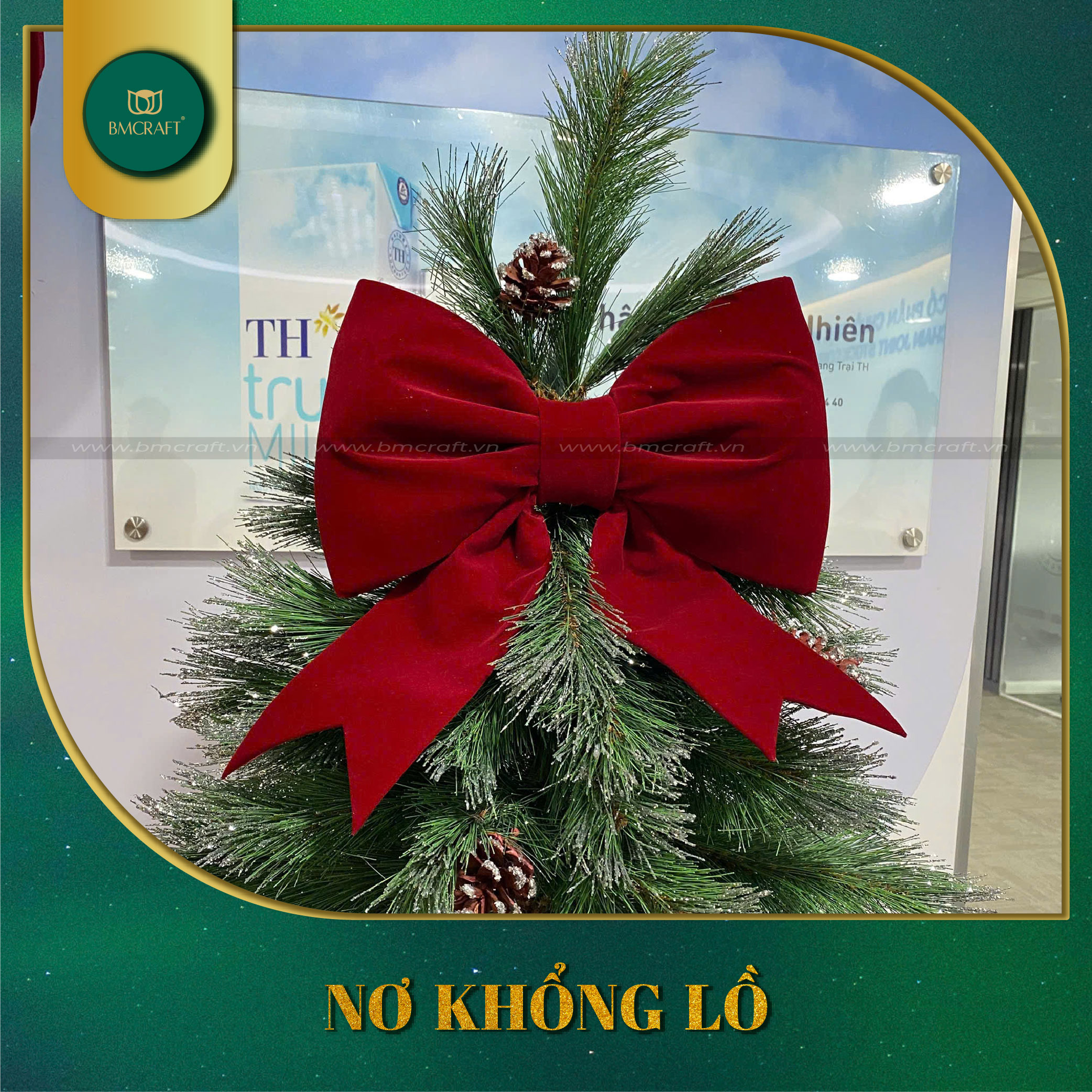 Một cây thông đẹp không chỉ nằm ở ánh đèn hay quả châu lấp lánh, mà ở cách phối các phụ kiện. Chiếc nơ cây thông Noel thủ công được thiết kế khéo léo giúp tổng thể trở nên cân đối, mềm mại và sang trọng hơn. Đặc biệt, các loại nơ khổng lồ Noel hoặc nơ handmade Noel mang lại sự nổi bật khác biệt rất phù hợp cho không gian cửa hàng, sự kiện hoặc trung tâm thương mại.