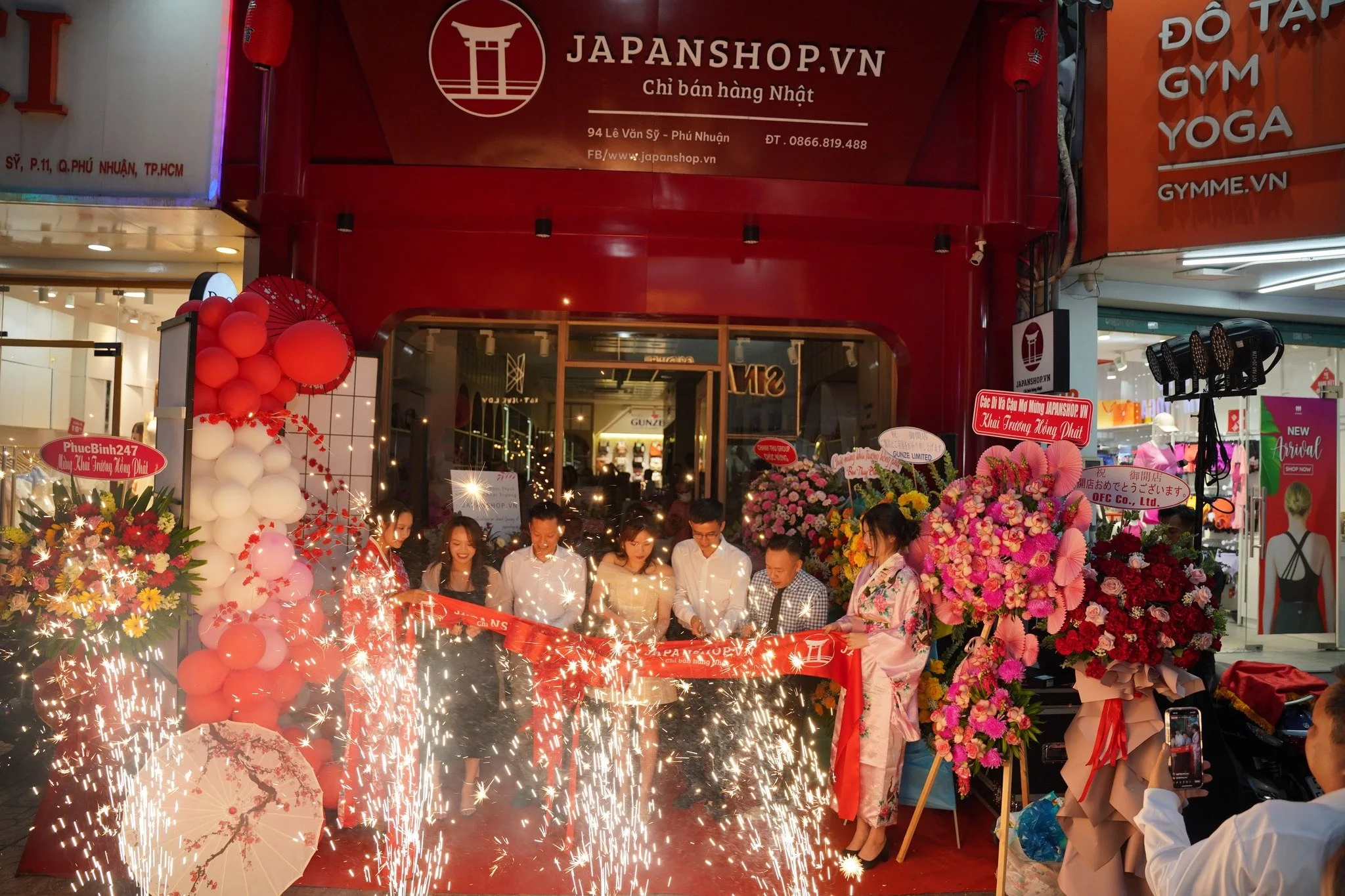 - Tạo góc chụp ảnh đẹp: Đặt nơ khai trương và băng cắt khánh thành ở nơi dễ nhìn, thêm chút ánh sáng để nổi bật hơn.