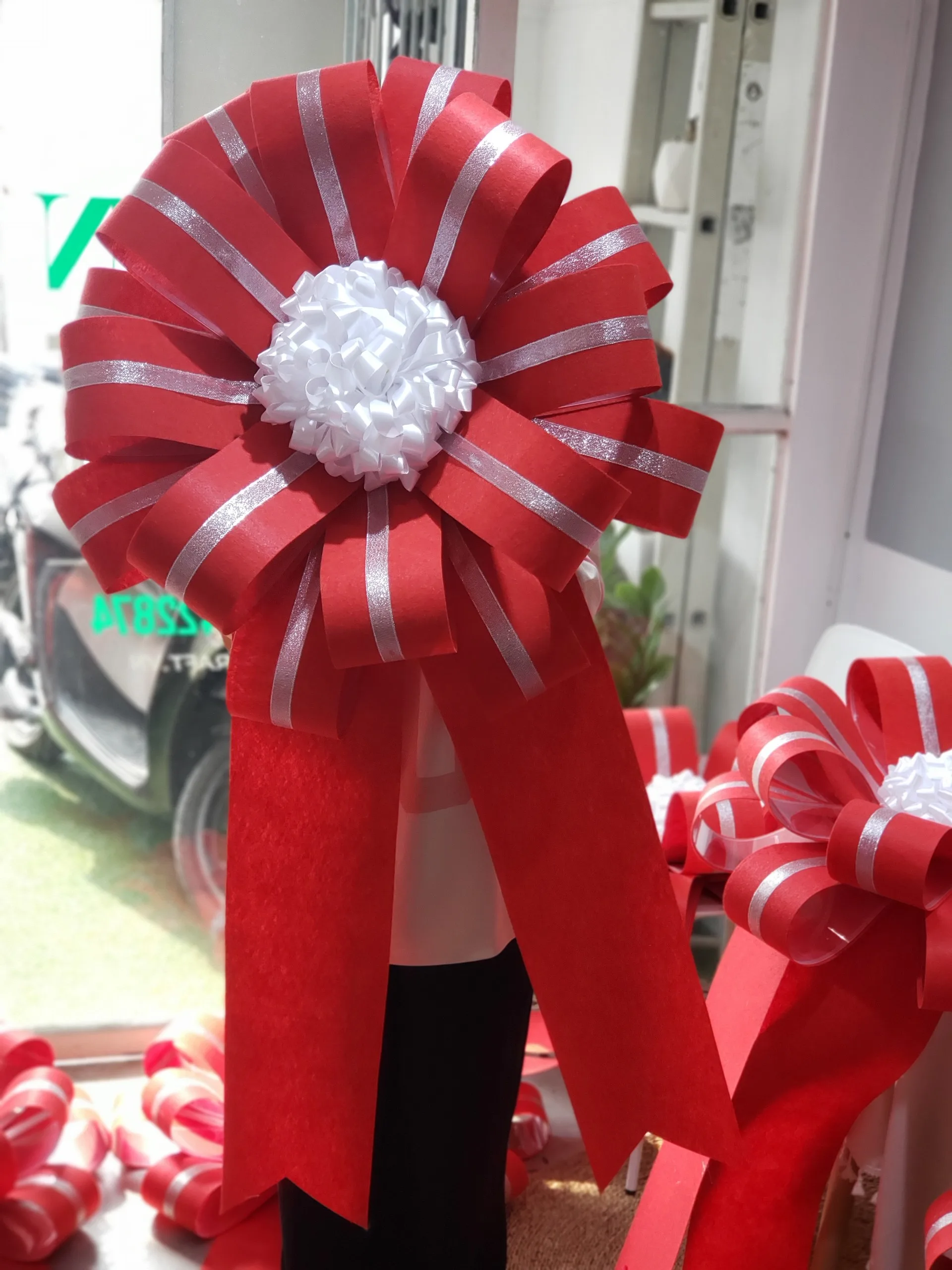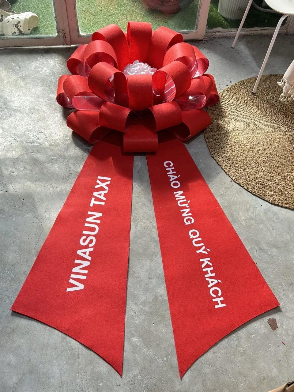 - Yêu cầu: màu đỏ kèm ruy băng trắng, in tên thương hiệu.