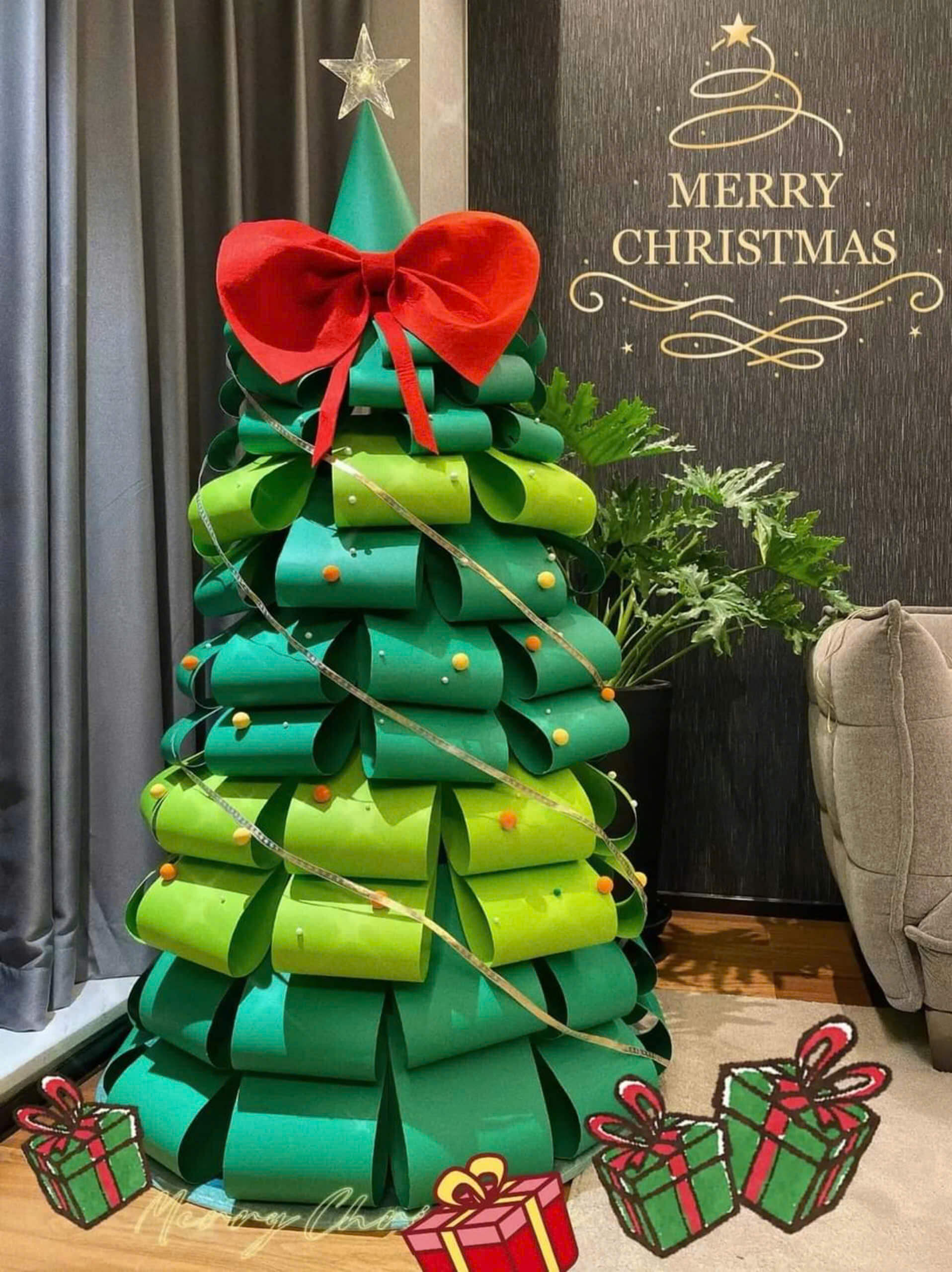 Nơ trang trí sảnh đón, hoặc không gian check in thường sử dụng nơ lớn, nơ khổng lồ. Sảnh và không gian Noel của bạn sẽ trở nên vô cùng ấn tượng, hoành tráng mà không thiếu nét thẩm mỹ, sự chỉn chu.
