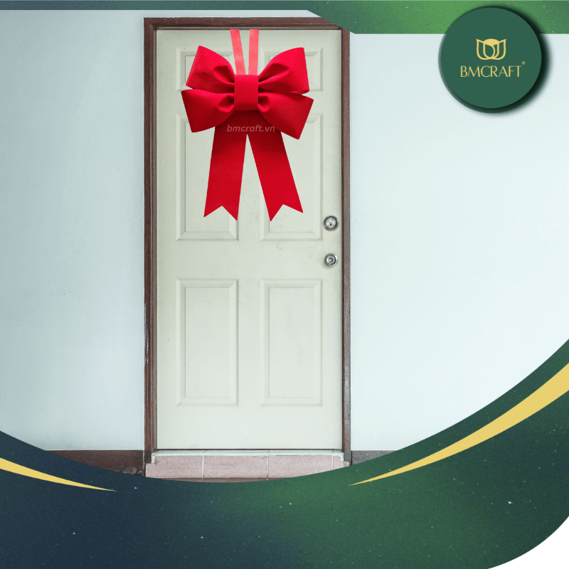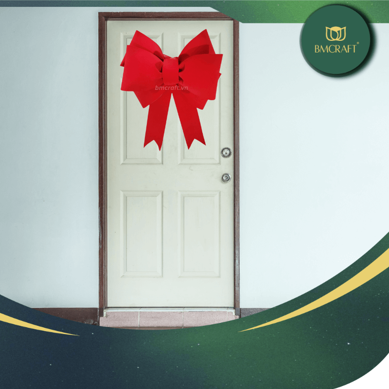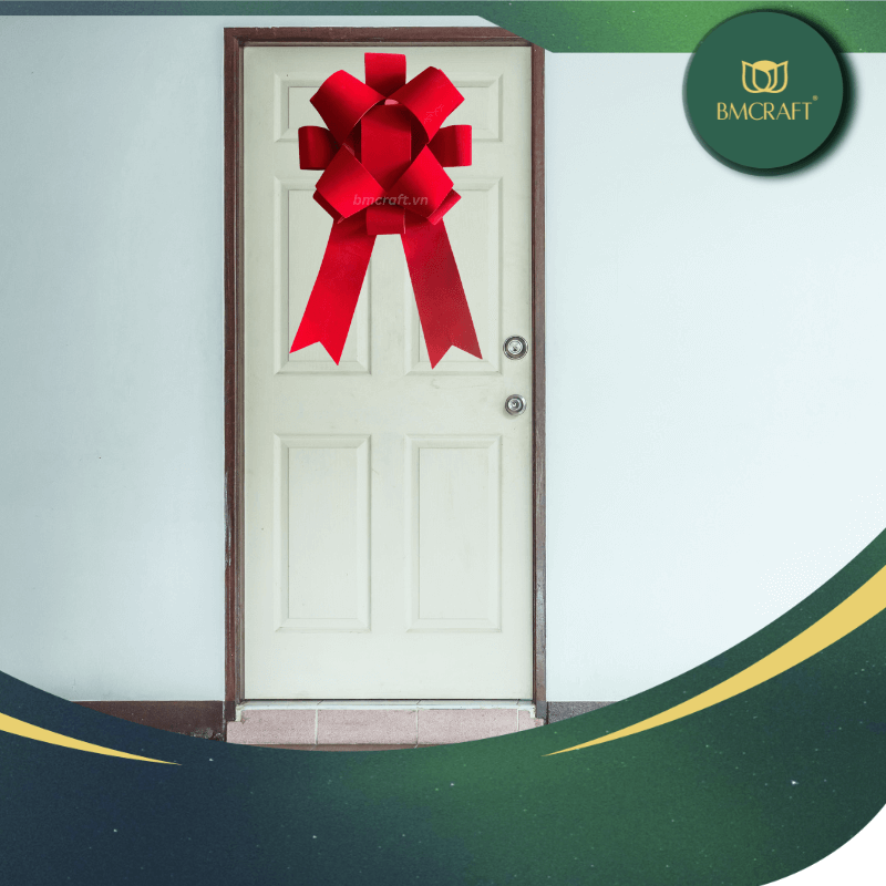 – Nơ khổng lồ cho cửa ra vào hoặc không gian lớn: Với kích thước lên đến vài mét, nơ lớn thường dùng để trang trí cửa chính, tạo ấn tượng ngay từ cái nhìn đầu tiên cho bất kỳ ai ghé thăm. Đây là cách dễ dàng nhất để chào đón khách khứa trong không khí lễ hội.