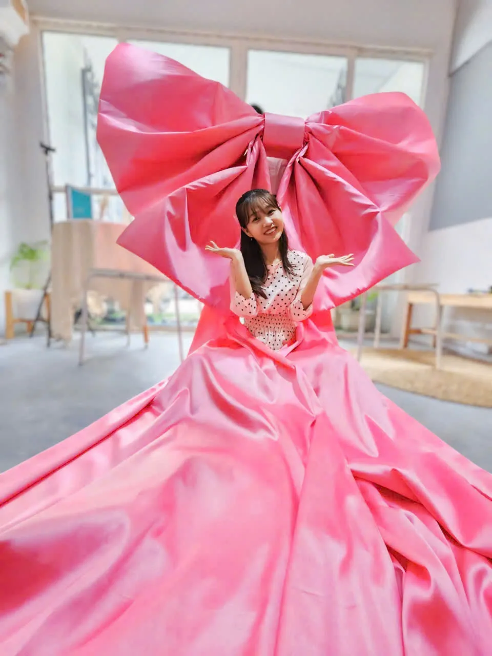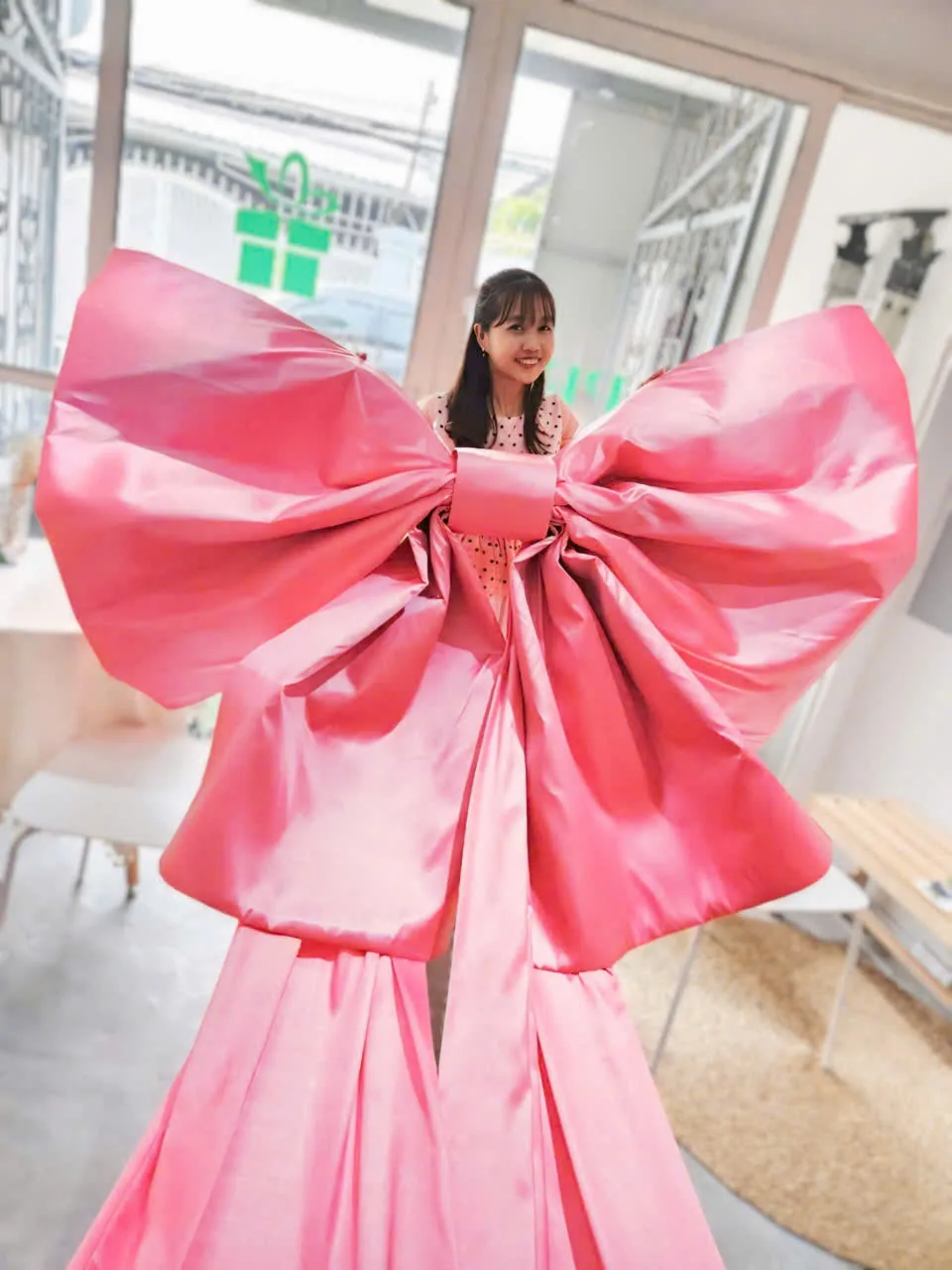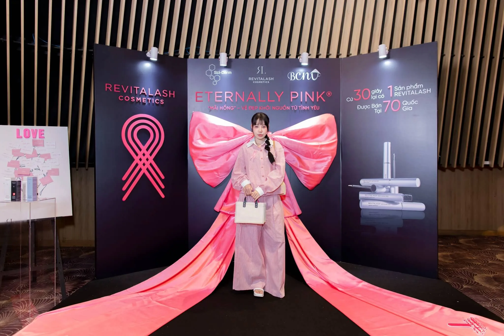 Thuộc concept của sự kiện, chiếc nơ có thiết kế trang nhã với màu hồng xinh xắn được đặt tại khu vực booth sự kiện. Phụ kiện là điểm nhấn cho khu vực giới thiệu sản phẩm cũng như là khu vực được sắp đặt để khách tham gia check in.