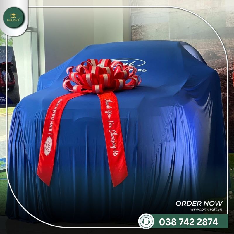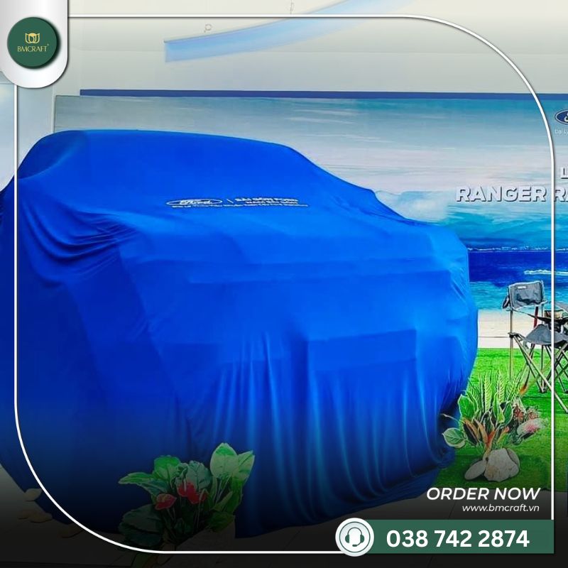 Dùng Áo Trùm Giao Xe phủ bên ngoài xe cho mục đích bảo quản xe, che phủ xe cho sự kiện bàn giao xe, triển lãm, trưng bày…