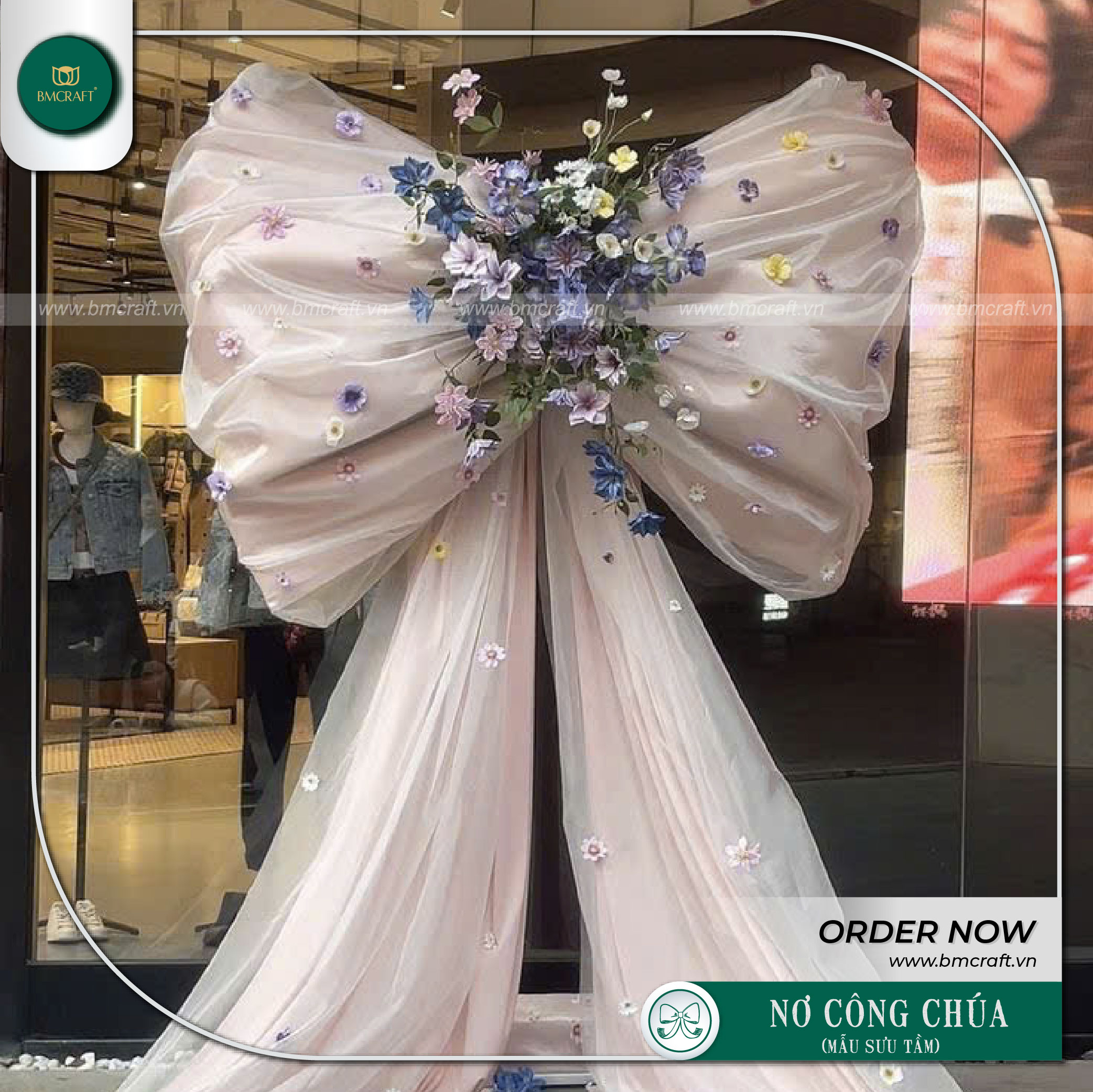 - Nhận thiết kế và sản xuất Nơ Hoa, Nơ Trang Trí Sự Kiện, Nơ Hoa Khổng Lồ theo yêu cầu: kích thước, mẫu mã, màu sắc