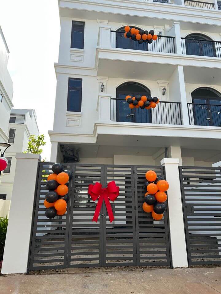 Cũng như phương án treo cửa, đính cửa; phương án treo nơ cổng dành cho những bất động sản như nhà biệt thự, nhà có cổng riêng biệt.
