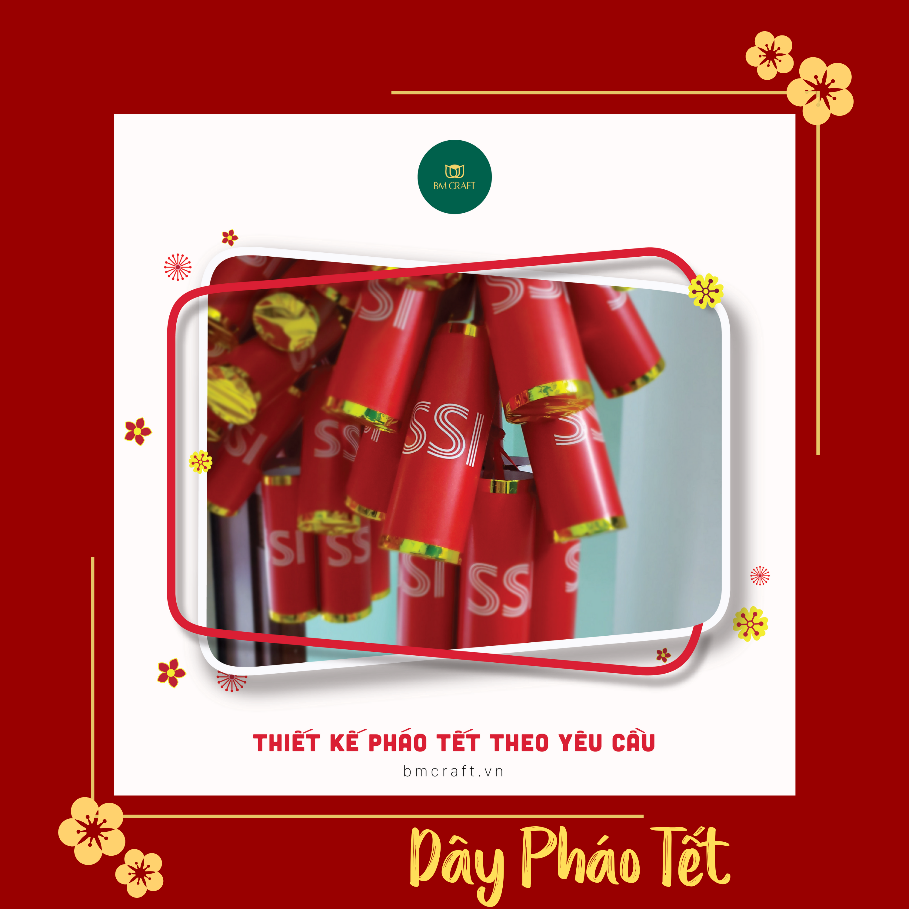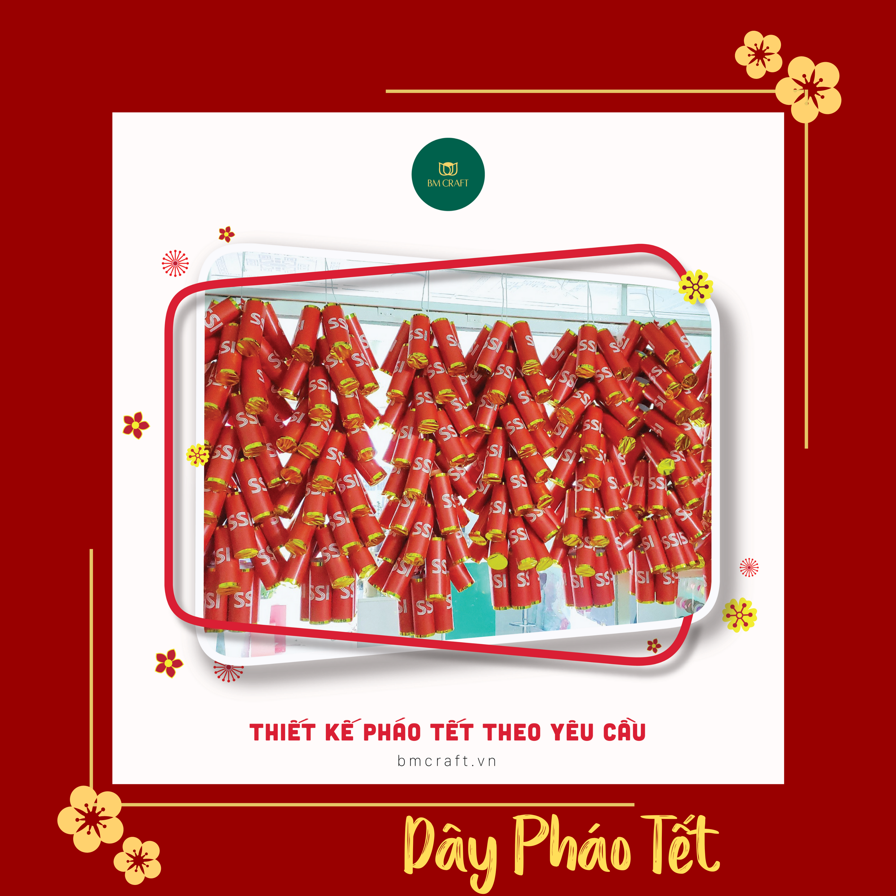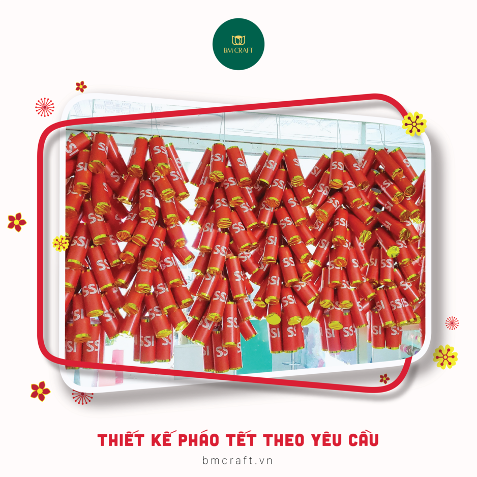 Dây pháo tết có in logo của thương hiệu do BMCRAFT thực hiện