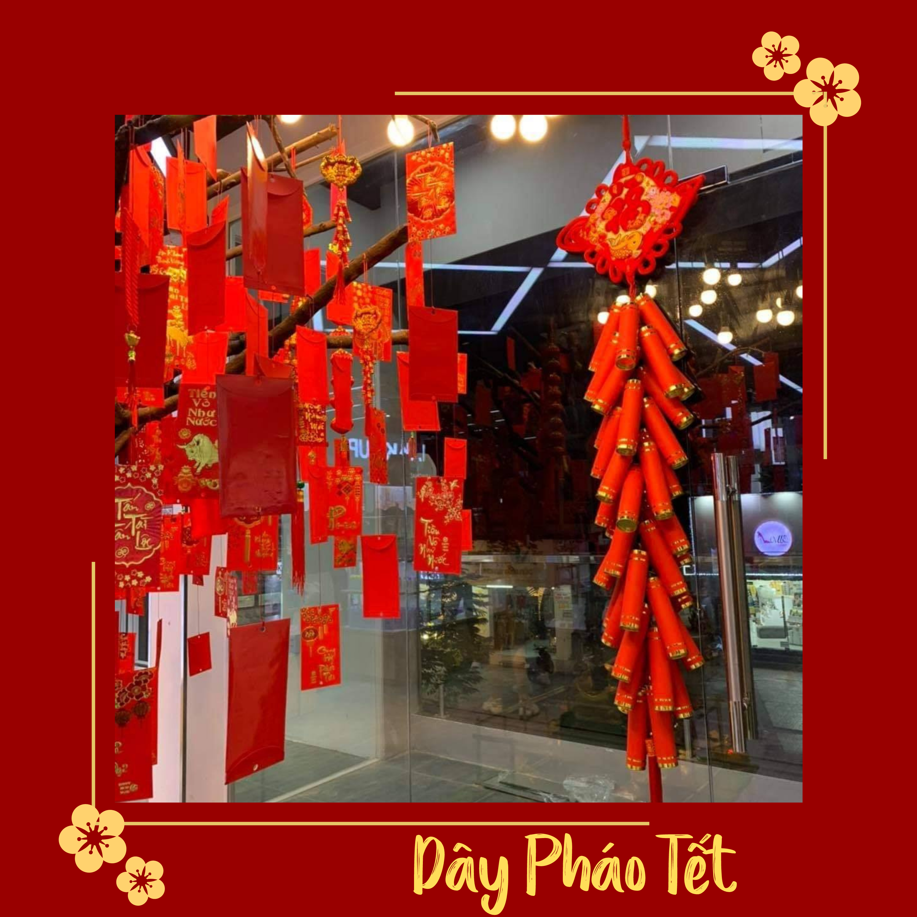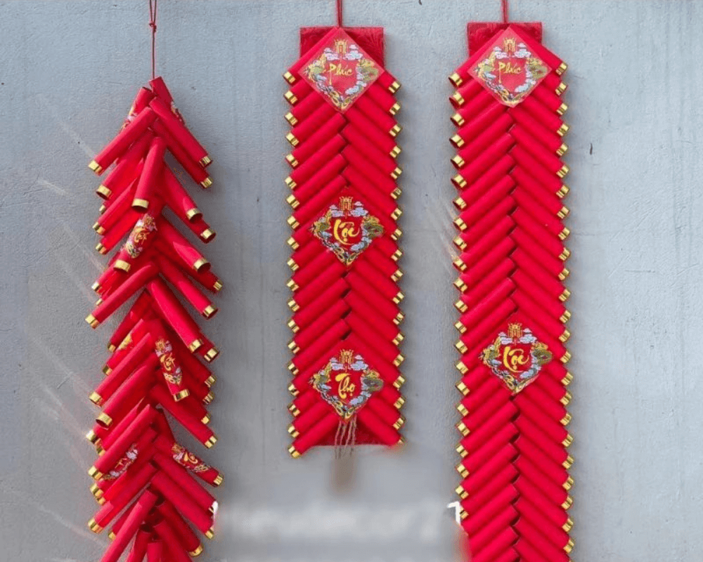 • Dây pháo: Dây pháo giả được sử dụng rộng rãi để trang trí, mang đến không khí vui tươi, rộn ràng của ngày Tết.