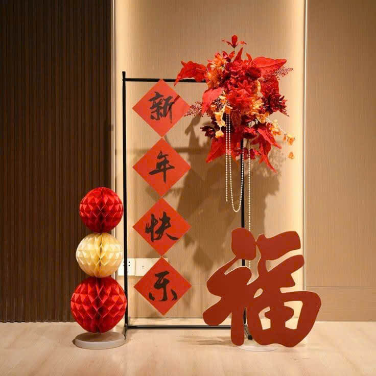 • Câu đối đỏ: Treo ở hai bên cửa chính hoặc trong phòng khách, câu đối đỏ mang những lời chúc tốt đẹp cho năm mới.