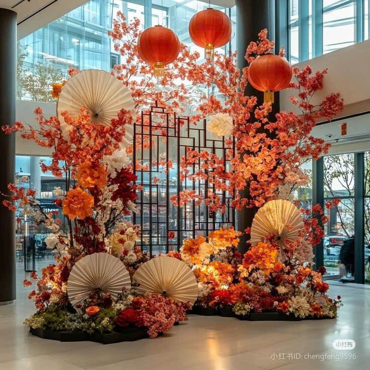 • Hoa khổng lồ thủ công: Hoa mai, hoa đào, hoa sen… được làm từ vải, giấy hoặc các chất liệu khác, mang vẻ đẹp tinh tế và bền bỉ.