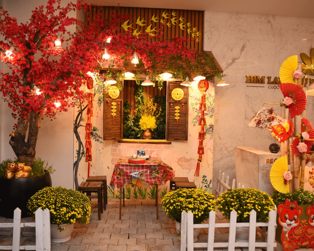 • Lựa chọn một chủ đề cụ thể cho trang trí Tết, ví dụ như “Xuân yêu thương,” “Tết đoàn viên,” “Chào đón năm mới thịnh vượng,” “Về quê ăn Tết”, “Tết An Lành”,…