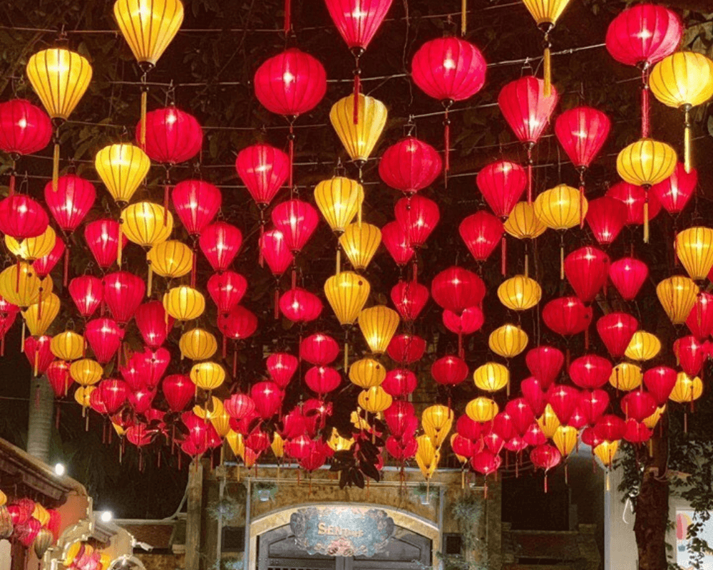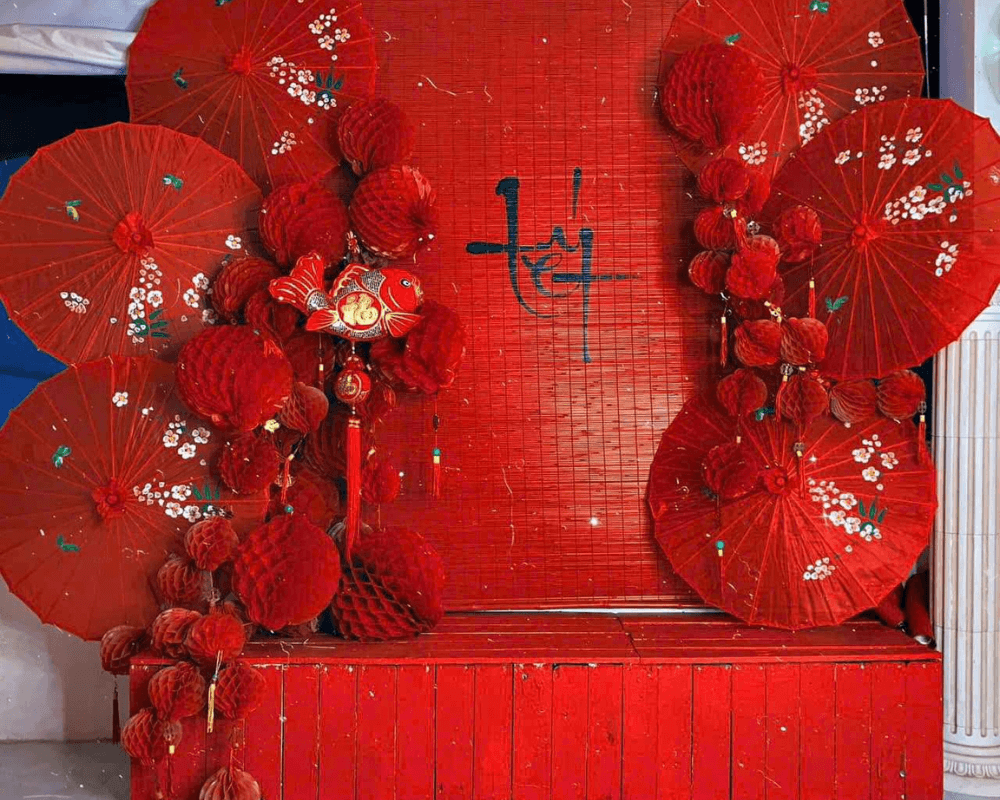 • Đèn lồng đỏ: Mang ý nghĩa may mắn, xua đuổi tà ma.