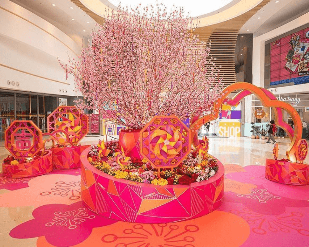 • Hoa mai, hoa đào khổng lồ: Tạo điểm nhấn độc đáo và ấn tượng cho không gian, đặc biệt phù hợp cho các sự kiện, trung tâm thương mại.