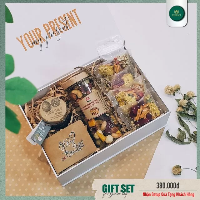 Hộp Quà Tặng Giáng Sinh do BMBOX phát triển thuộc hệ sinh thái BMCRAFT. Sản phẩm là ý tưởng về những hộp quà tặng được thiết kế hoàn thiện từ sản phẩm tặng, đến giấy gói, thiệp gửi kèm để bất cứ ai cũng đều có ngay một món quà ý nghĩa dành cho người mình quan tâm, để ý.