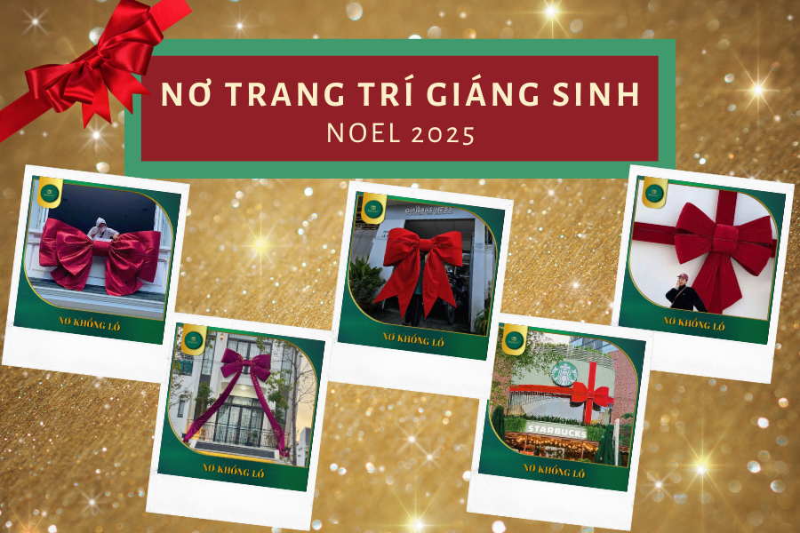- Nơ trang trí Giáng sinh sự kiện doanh nghiệp, gắn logo thương hiệu, kích thước theo thiết kế.