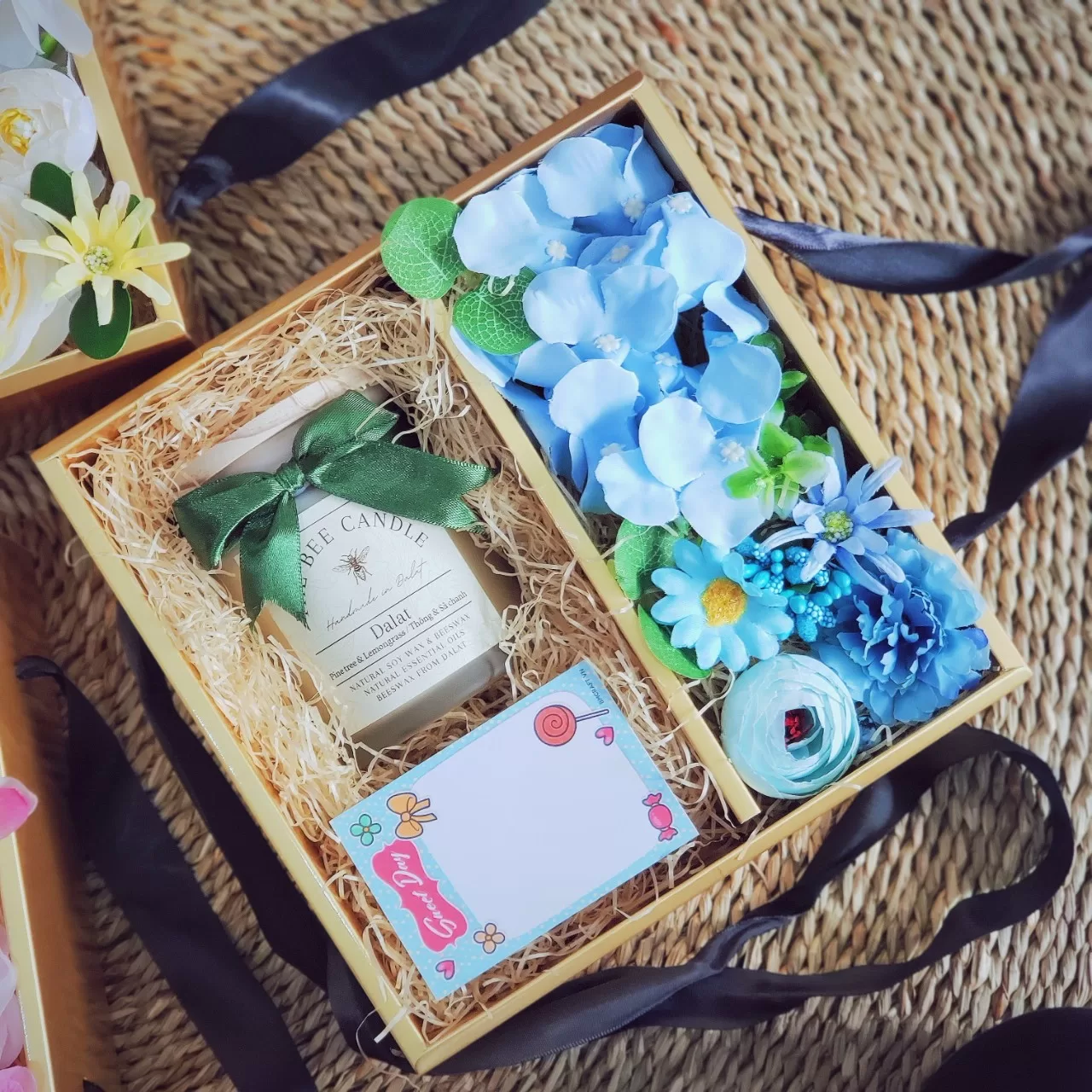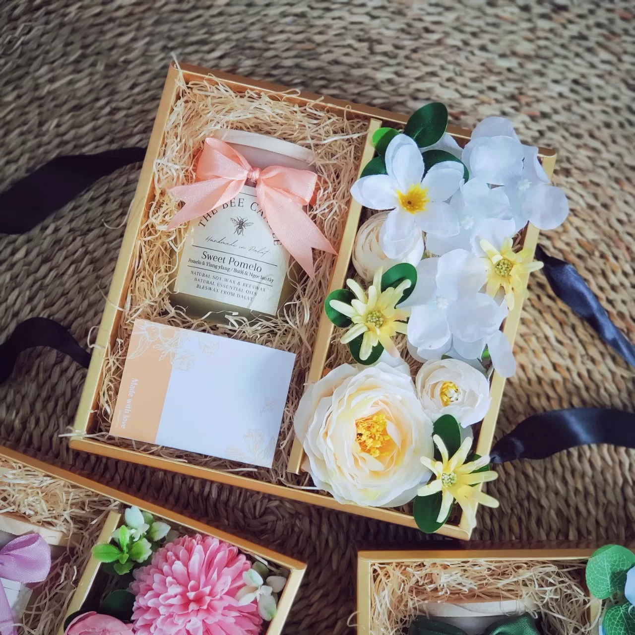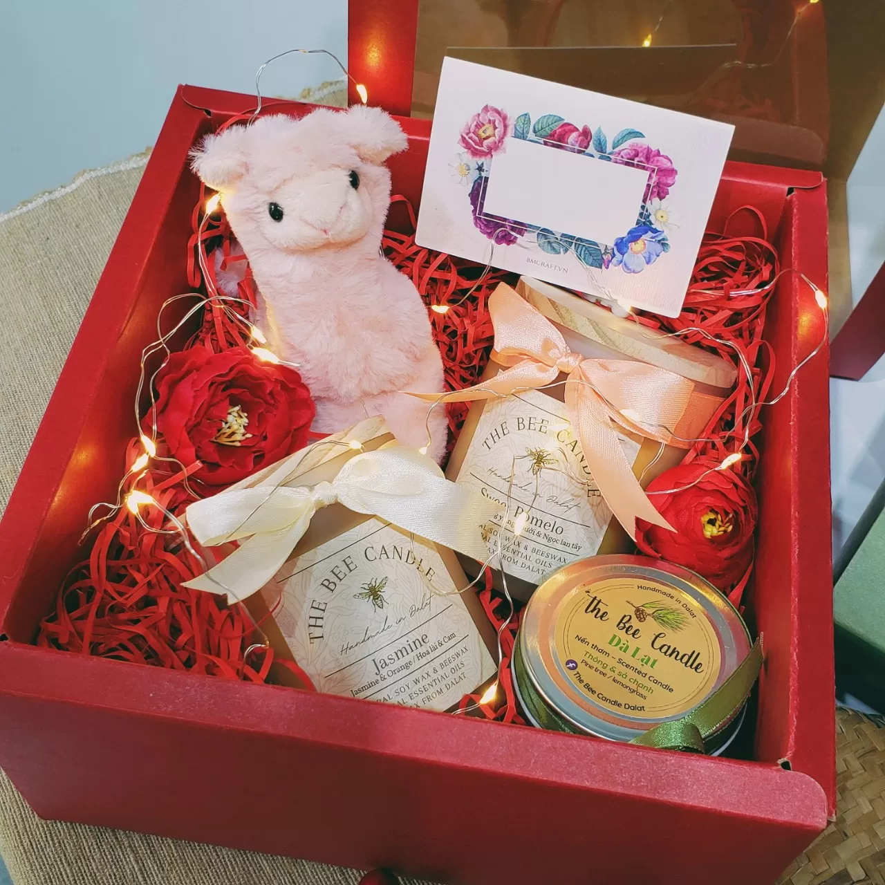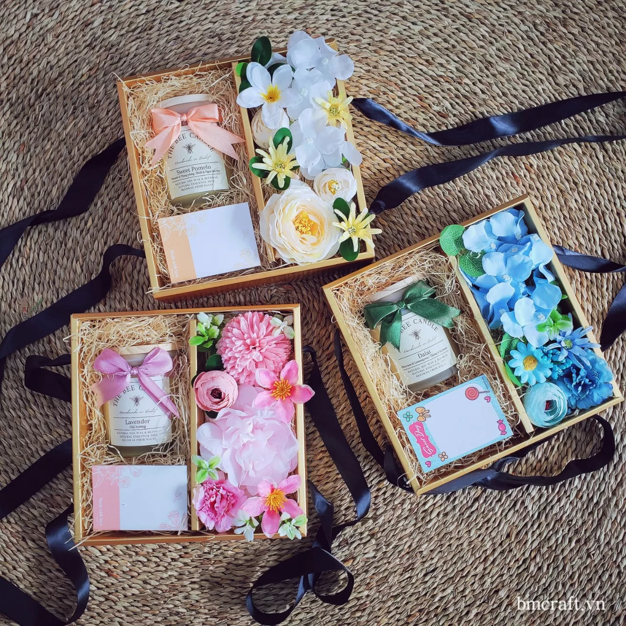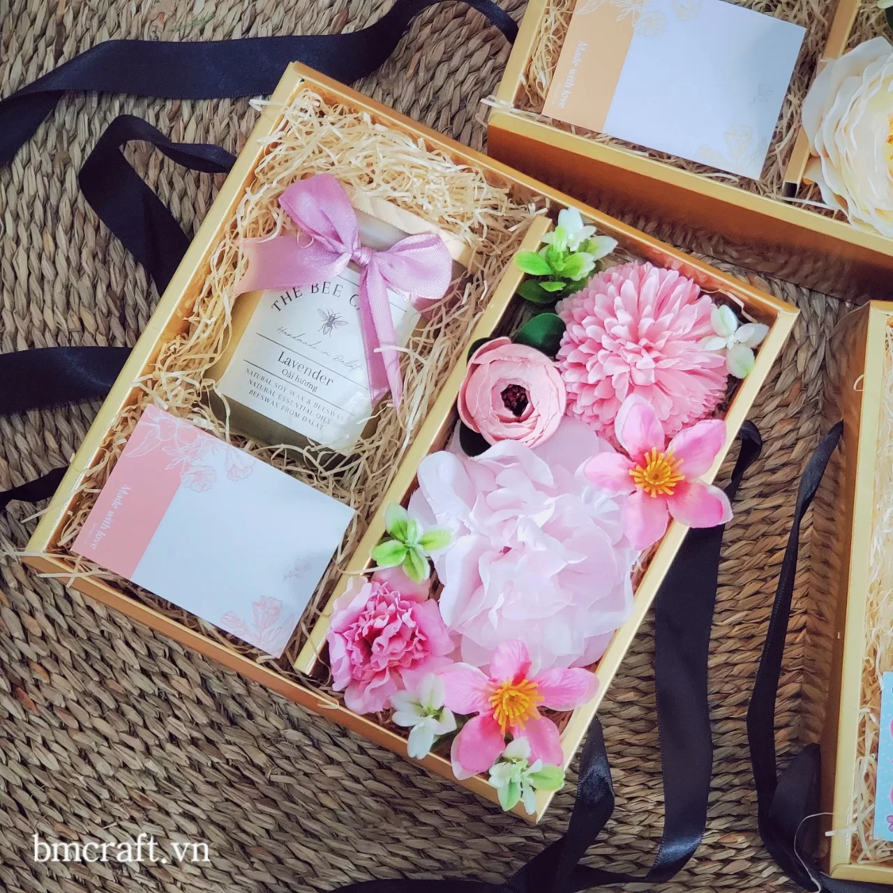 Không chỉ dừng lại ở trang trí, BMCRAFT còn thiết kế hộp quà, thiệp và set quà tặng handmade dành riêng cho doanh nghiệp trong mùa Noel. Mỗi sản phẩm được cá nhân hóa theo nhận diện thương hiệu từ màu sắc, nơ, hoa, đến thiết kế hộp giúp doanh nghiệp gửi gắm lời chúc chân thành theo cách tinh tế nhất.
