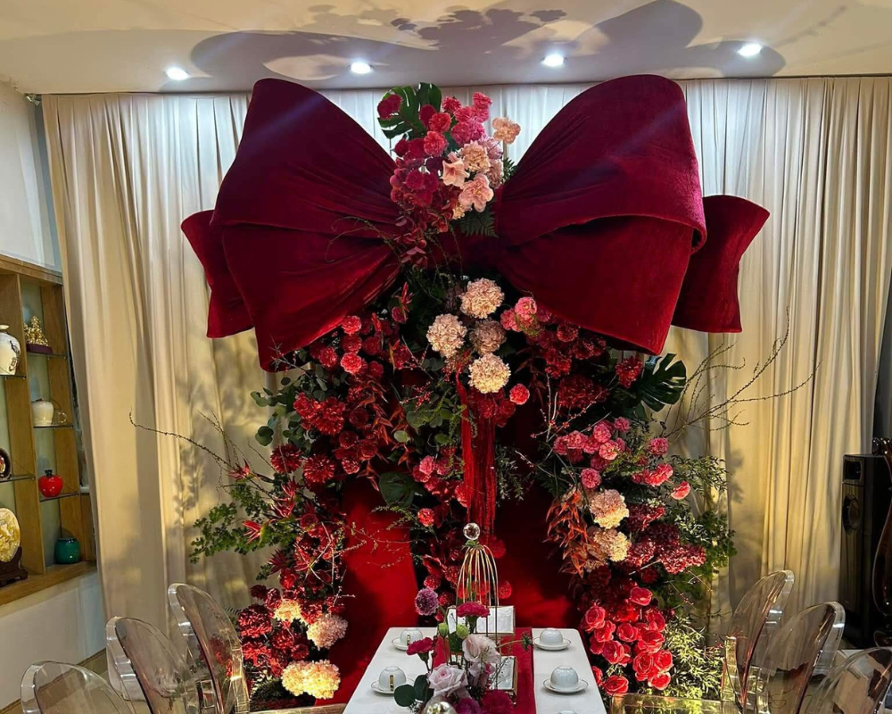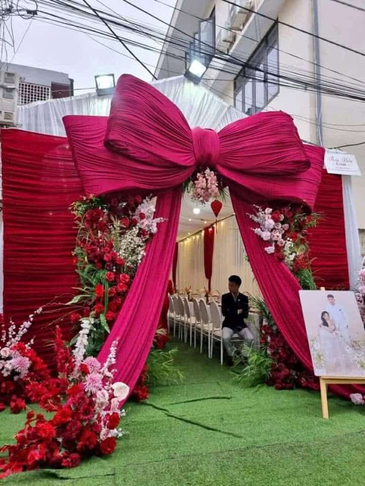 Trang trí cổng cưới bằng nơ lớn đang trở thành xu hướng hot cho mùa cưới năm nay. Vừa qua, những chiếc nơ khổng lồ trang trí Noel được đón nhận nhiệt tình thì nơ cưới có kích thước lớn không chỉ được đón nhận bởi vẻ đẹp thanh lịch mà còn vì khả năng tạo điểm nhấn và sự trang trọng cho không gian cưới hỏi đậm màu sắc lãng mạn, tinh tế.